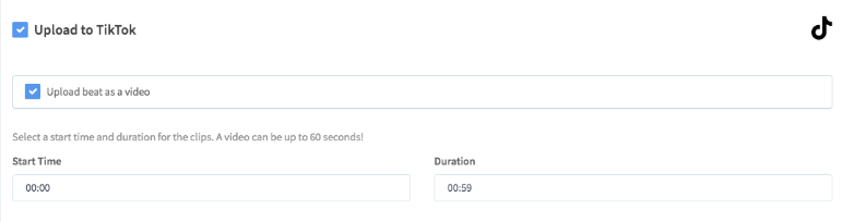 - For TikTok, set your start and end time - this is the section of your beat that will be used for the video.