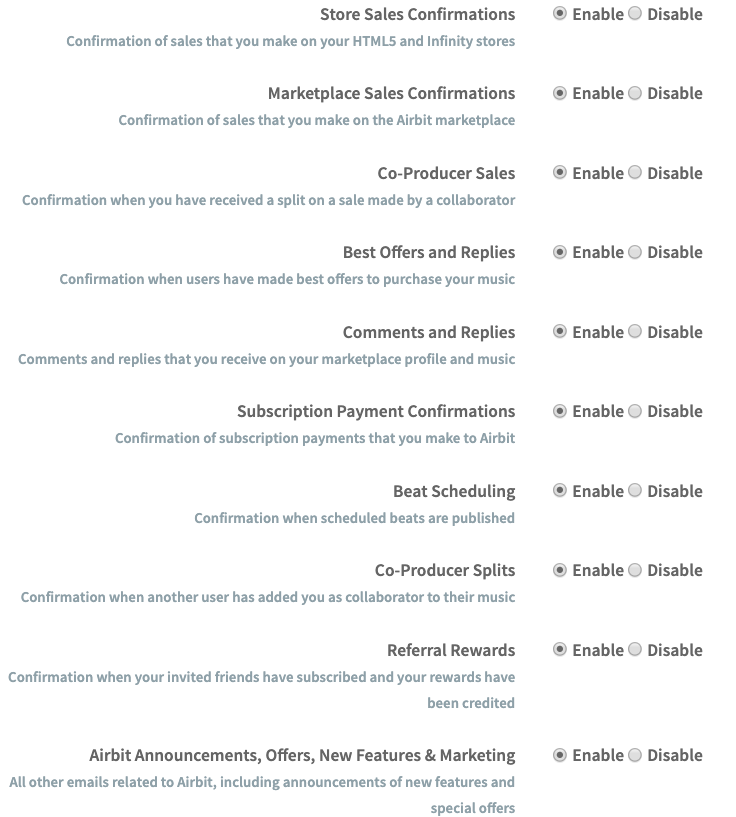 We think it's important to keep up to date with regular information in order to know everything that's going on with your account and with Airbit. However, we understand you might want to receive specific emails only, or none at all. This can be managed by heading to the email preferences section of your account, here.